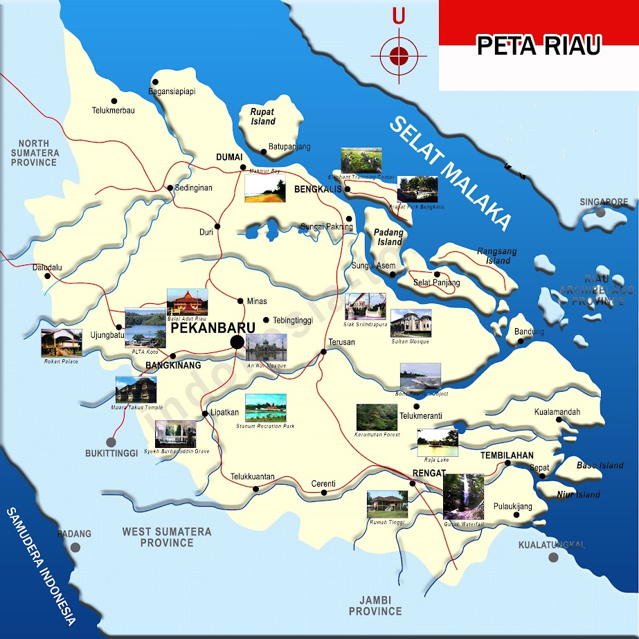 Peta Riau – Riau merupakan salah satu dari 34 provinsi di Indonesia yang beribukota di Pekanbaru. Letaknya di tengah-tengah namun di tepi pantai Pulau Sumatra. Provinsi Riau merupakan salah satu provinsi yang kaya, kekayaan daerah didapat dari sumber daya alam seperti minyak bumi dan gas alam (migas), dari tanaman misalnya dari perkebunan karet, perkebunan kelapa sawit dan perkebunan serat.